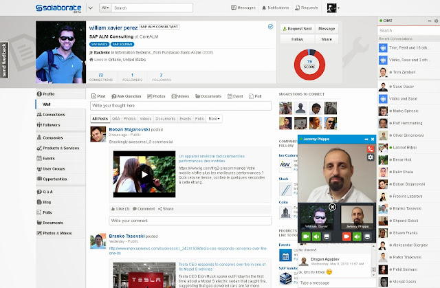 Solaborate is a new way for the technology community to be more productive. Technology professionals and companies are invited to connect, collaborate and discover opportunities while creating an ecosystem around products and services. The public beta will feature top global technology companies such as Apple, Google, Microsoft, SAP, Facebook, IBM, Samsung and Cisco. Users can now post on a wall, follow, message, share rich media content and much more.